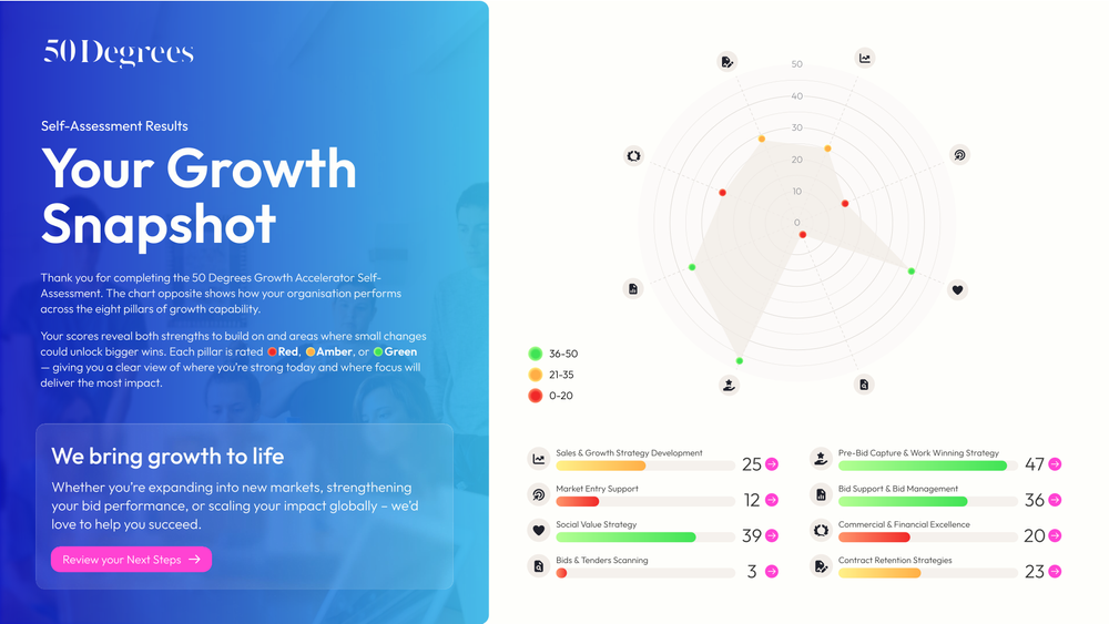Growth is at the top of every board agenda. Whether you’re a public-sector provider, a global corporate, or a fast-scaling SME, the need to win more work, expand into new markets, and retain valued clients has never been greater.